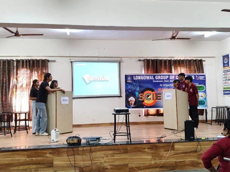 Longowal Group of Colleges, Derabassi, in collaboration with the Institute Innovation cell, celebrated National Science Day on 27 February 2026 with great enthusiasm to commemorate the contribution of Sir C.V. Raman and to promote scientific awareness among students. The celebration featured a Science Quiz, Creative and Innovative Poster Presentation, and a Debate Competition on the topic “Artificial Intelligence – Boon or Bane,” where students actively participated and showcased their knowledge, creativity, and critical thinking skills.